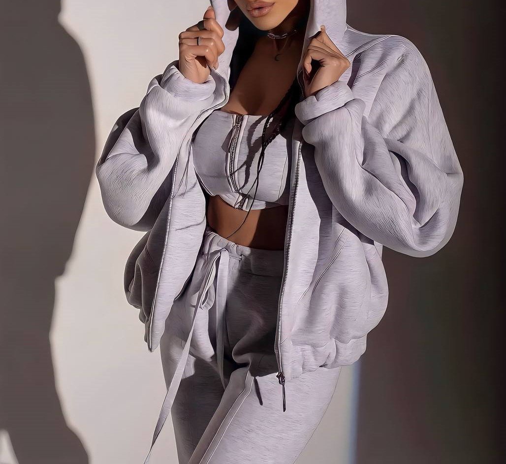 ZIPPER SWEATSHIRT PLUS BUSTIER AND MATCHING PANTS